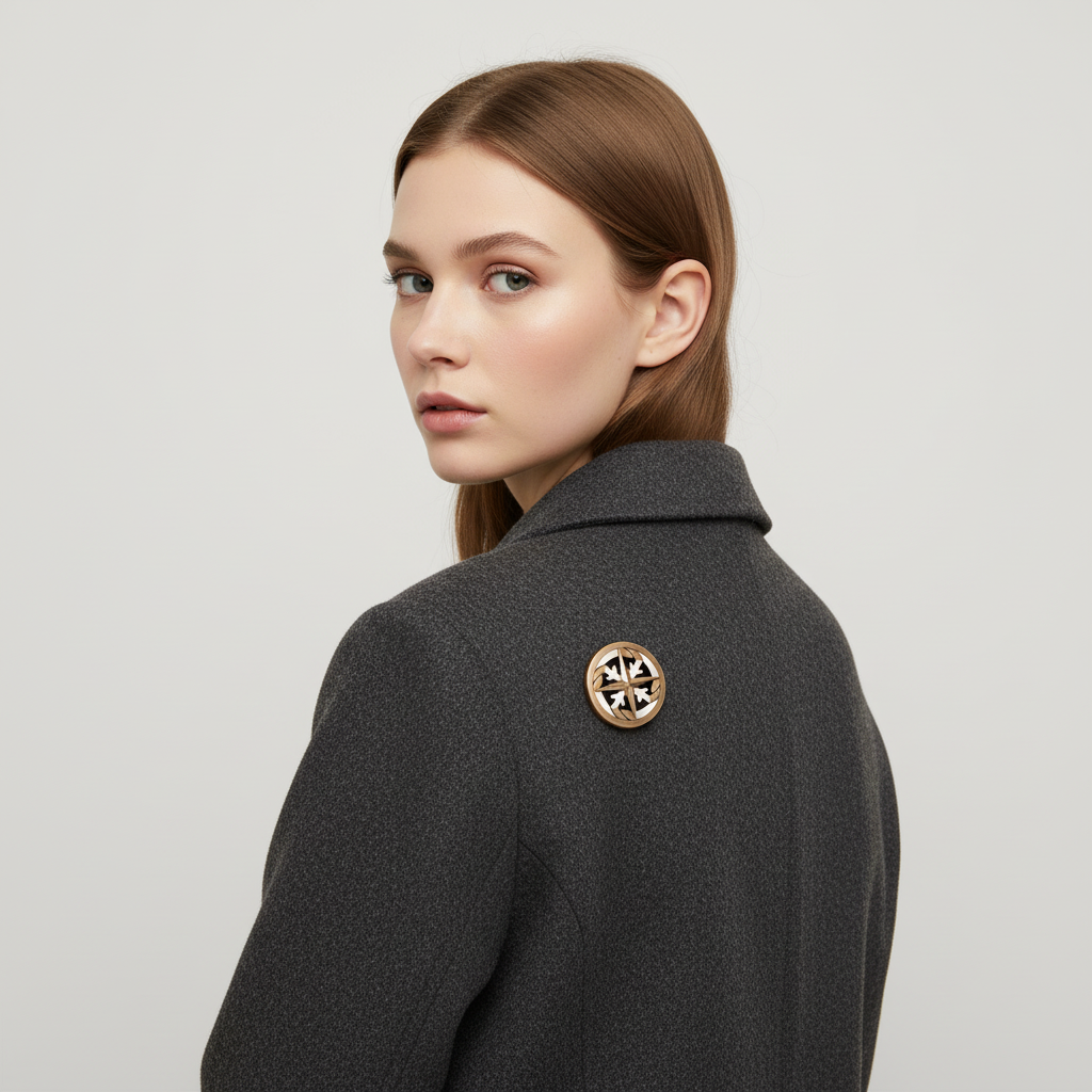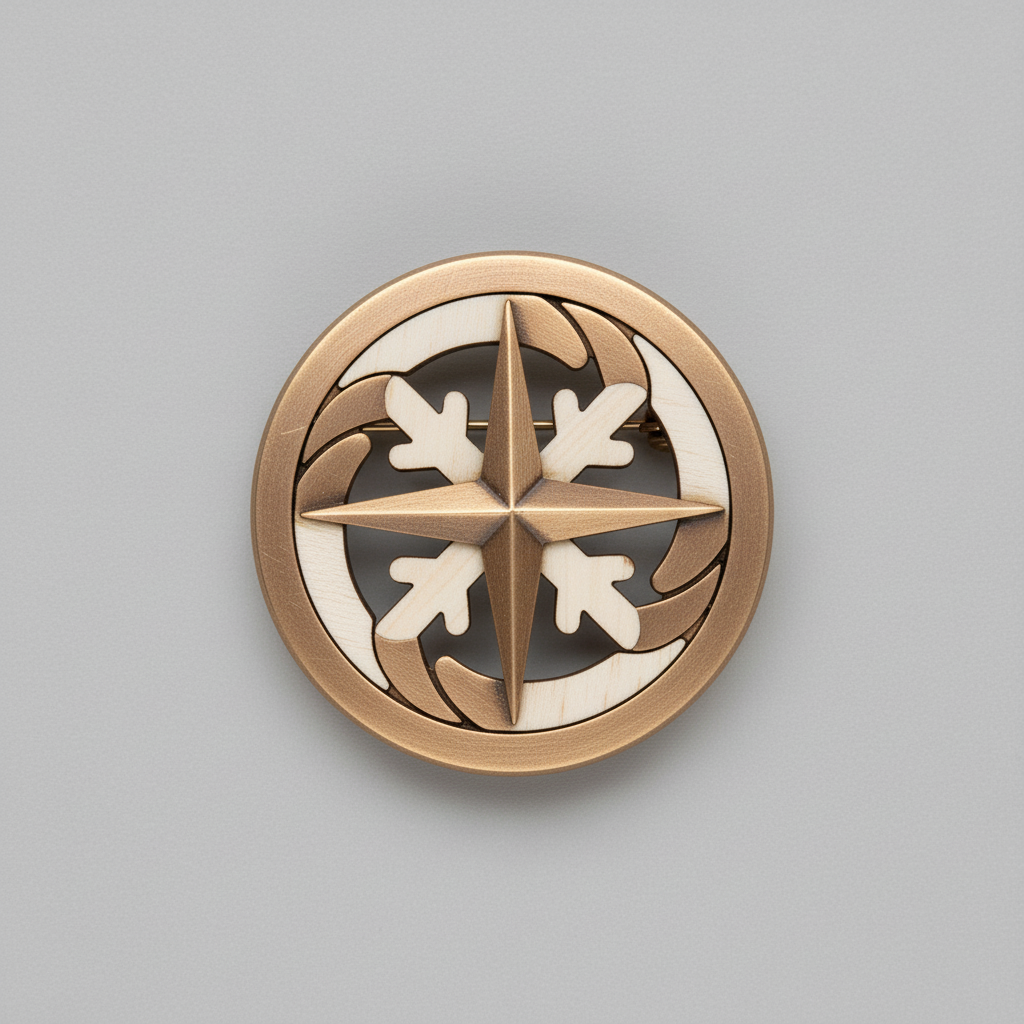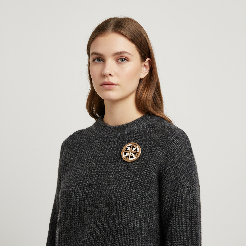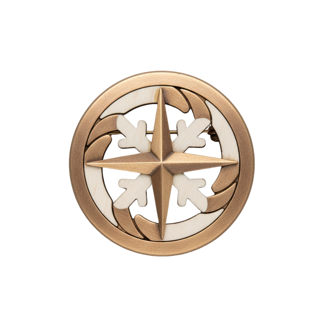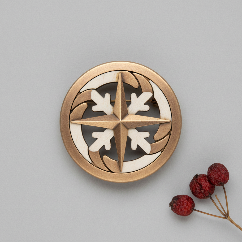 Winter’s Compass Pin är en unik brosch som lyfter din vintergarderob med sin distinkta design och hållbara material. Denna pin kombinerar den varma lystern från återvunnen brons med det ljusa, fina ådringen av lönnträ, vilket skapar en iögonfallande kontrast. Perfekt för att ge personlighet åt en kappa, tröja eller väska under den kalla stadsvintern.