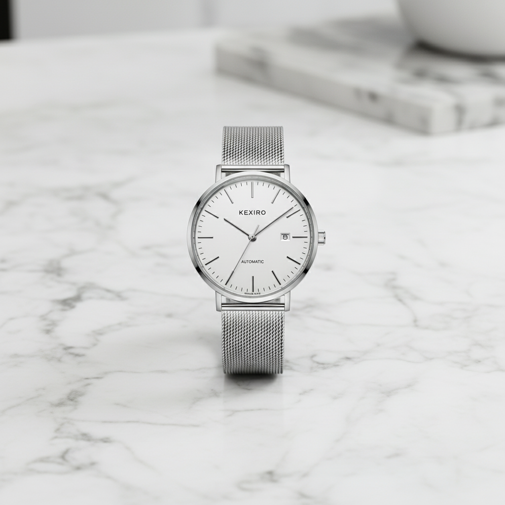 KEXIRO Automatisk Klocka med Mesharmband Minimalistisk Herrklocka Stål