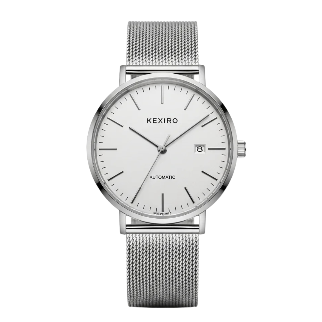 Upplev den perfekta balansen mellan traditionellt hantverk och modern design med KEXIRO’s automatiska klocka. Denna klocka drivs av din egen rörelse och eliminerar behovet av batterier, vilket förenar hållbarhet med sofistikerad stil. Det eleganta mesharmbandet i rostfritt stål och den avskalade urtavlan gör den till en tidlös accessoar för den medvetna mannen.