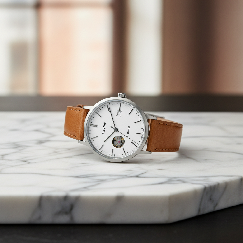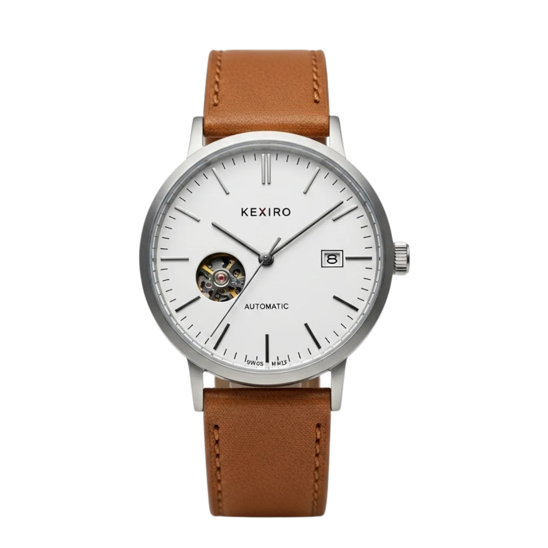 KEXIRO Automatisk Klocka Veganskt Läder – Minimalistisk Herrklocka