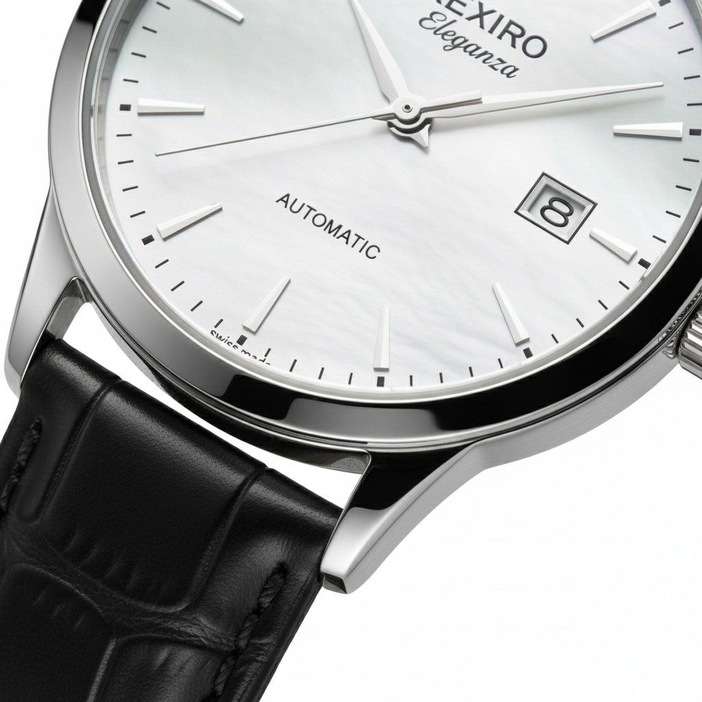 Upplev den perfekta kombinationen av klassisk design och modern ingenjörskonst med KEXIRO ‘Eleganza’. Denna utsökta automatiska dressklocka är skapad för den moderna kvinnan som värdesätter både stil och substans, med ett självuppdragande urverk som drivs av din egen rörelse.