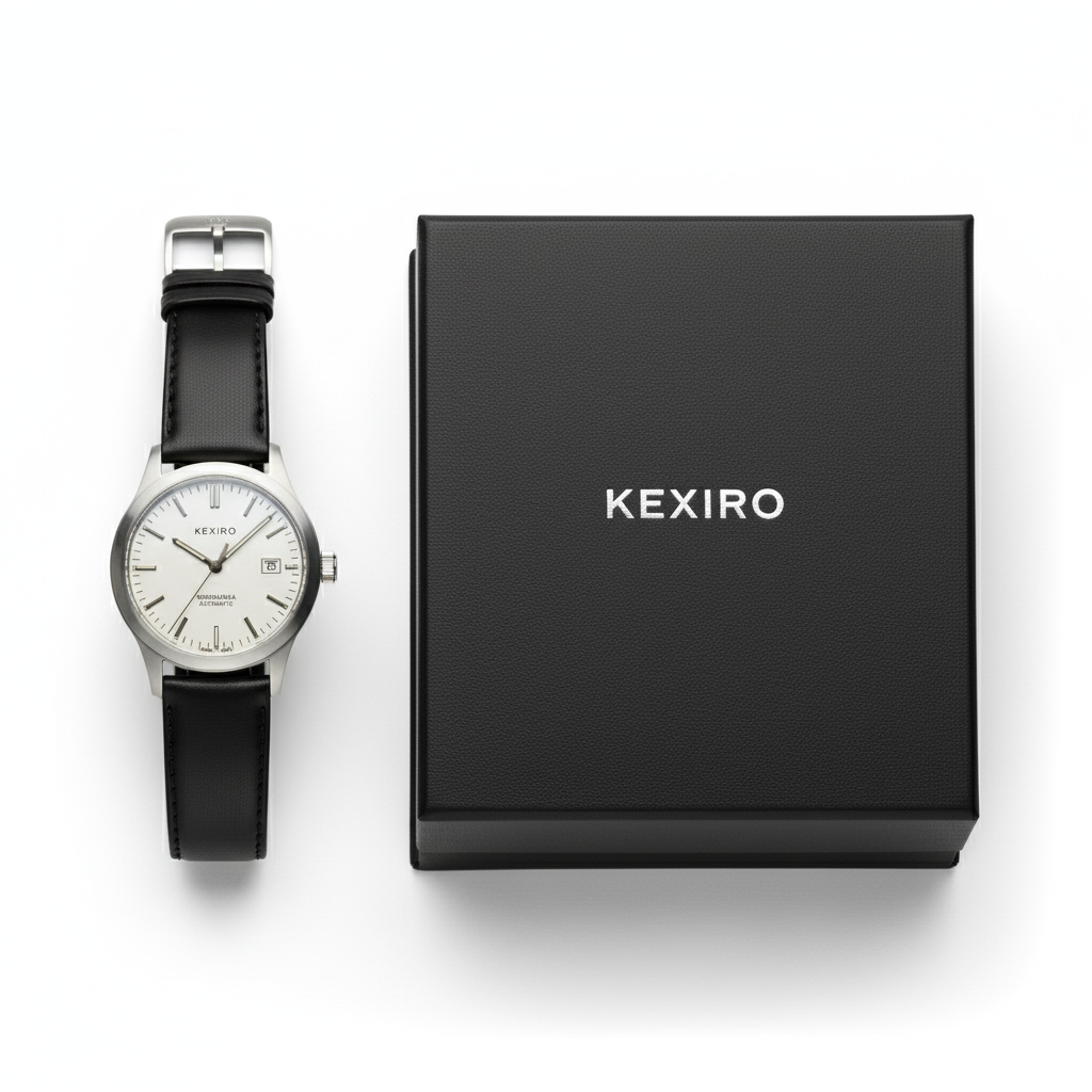 KEXIRO Automatisk Klocka Veganskt Läder – Minimalistisk Herrklocka