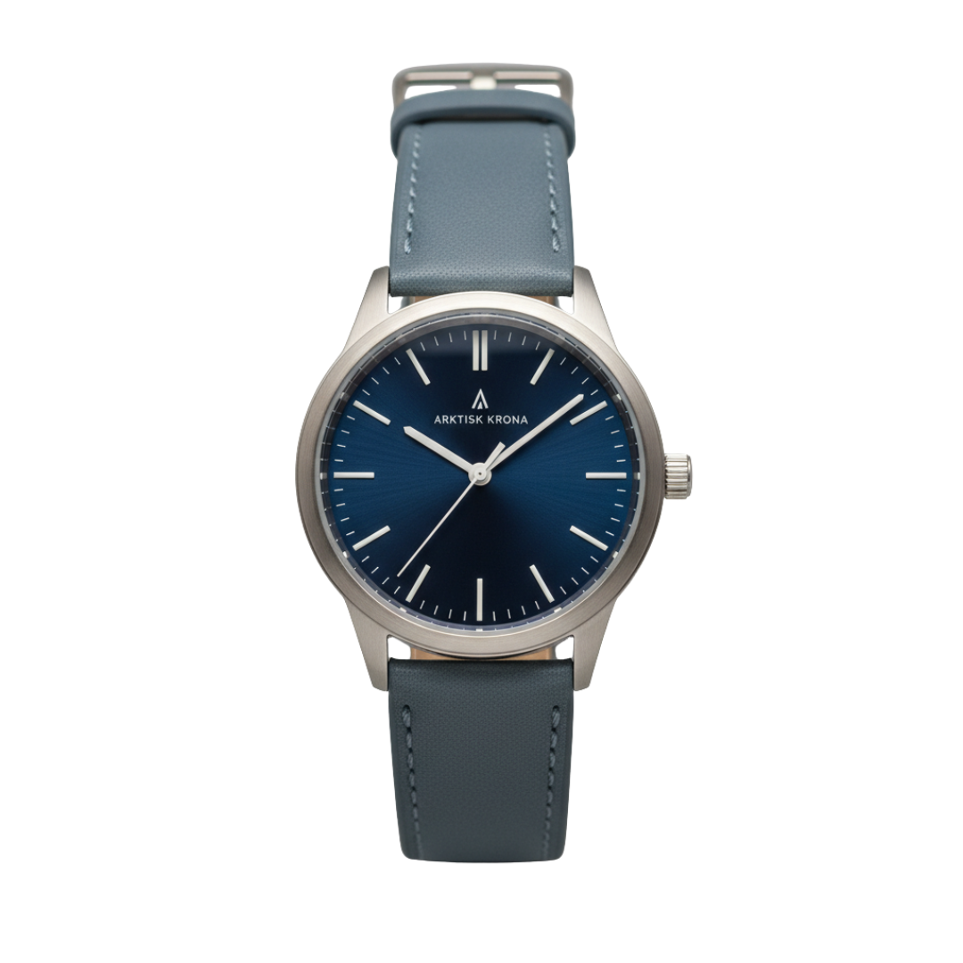 Arktisk Krona är en robust och stilren pendlarklocka, designad för den moderna mannen som värdesätter hållbarhet och funktion.