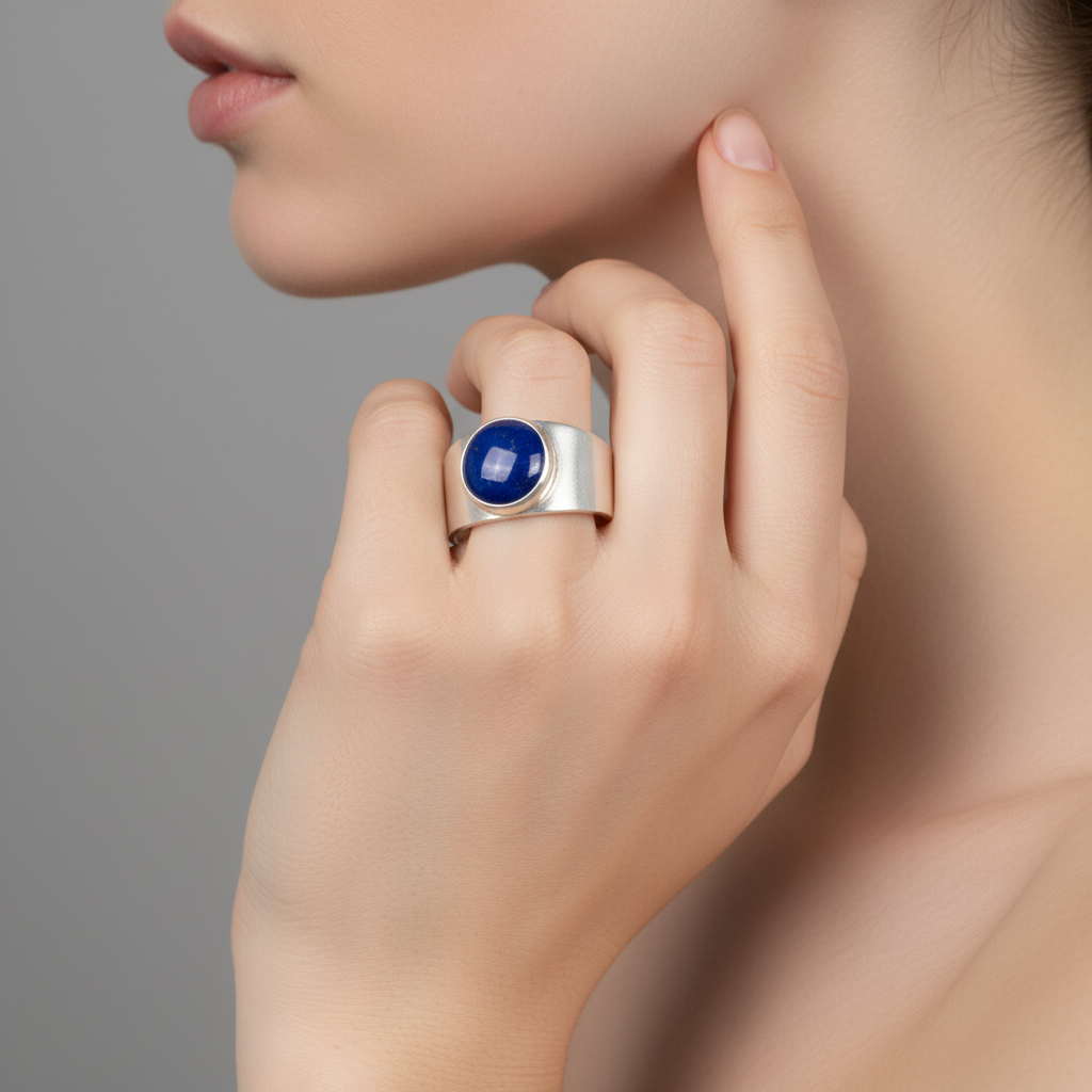 Category: Ädelstenssmycken Tags: blå ädelsten ring, damring, eleganta ringar, handgjord ring, lapis lazuli ring, nordiska smycken, present ring, sterlingsilver ring, unik ring, vinter accessoarer Brand: KEXIRO